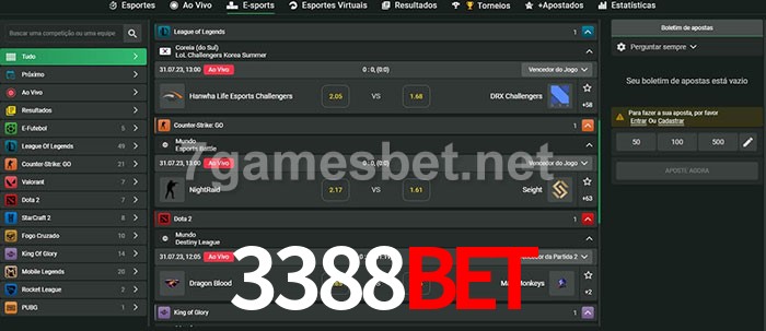 O 3388bet oferece uma grande seleção de opções de apostas em e-sports com probabilidades competitivas